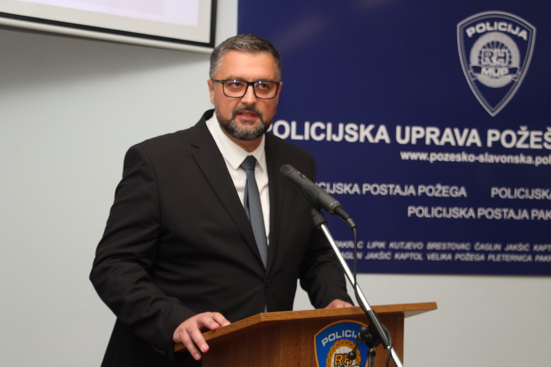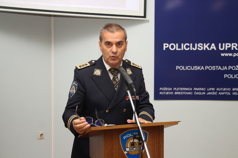 Program je nastavljen u prostorijama Policijske uprave požeško-slavonske, gdje se uzvanicima obratio načelnik PU Željko Grgić. U svom govoru istaknuo je da su sigurnost i povjerenje riječi koje odlikuju hrvatsku policiju, a građani vjeruju u njezinu stručnost i učinkovitost. Posebno je naglasio doprinos policajaca poginulih u Domovinskom ratu, njih trideset iz naše PU položilo je život za domovinu. Rečenica „Prvi u ratu, prvi u miru“ najbolje je opisivala njihovu ulogu.