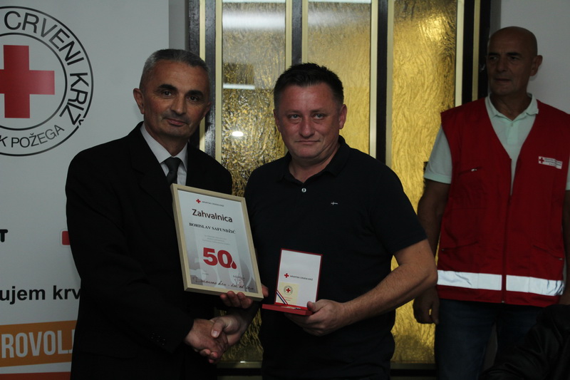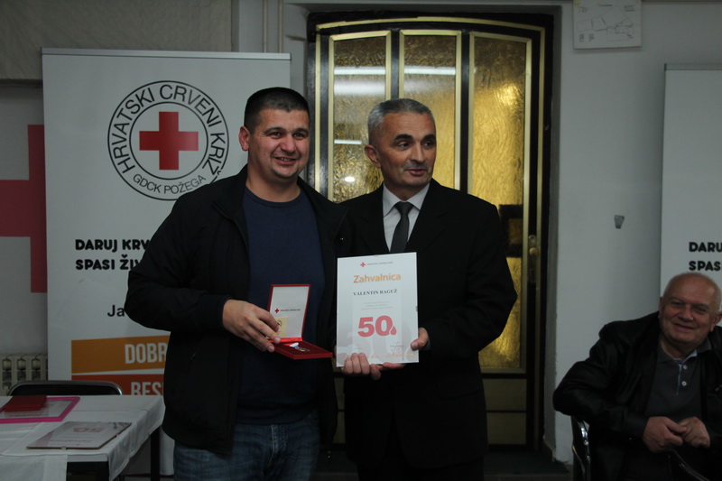 POŽEGA - Hrvatski Crveni križ Gradsko društvo Crvenog križa Požega upućuje iskrene čestitke svim dobrovoljnim davateljima krvi povodom 25. listopada Dana dobrovoljnih davatelja krvi, te izraze iskrene zahvalnosti za plemenitost i humanost koju su do sada iskazali u solidarnosti sa svima kojima je njihova krv bila neophodno potrebna. Svim dobrovoljnim davateljima krvi želimo dobro zdravlje i puno sreće uz osobni uspjeh u životu - istakli su u čestitci, a Gradsko društvo Crvenog križa Požega upriličilo je i prijem za sve višestruke darivatelje krvi i zahvalnicama, zlatnim značkama i prigodnim poklonima nagradilo sve uz 25. listopada Dan dobrovoljnih darivatelja krvi.