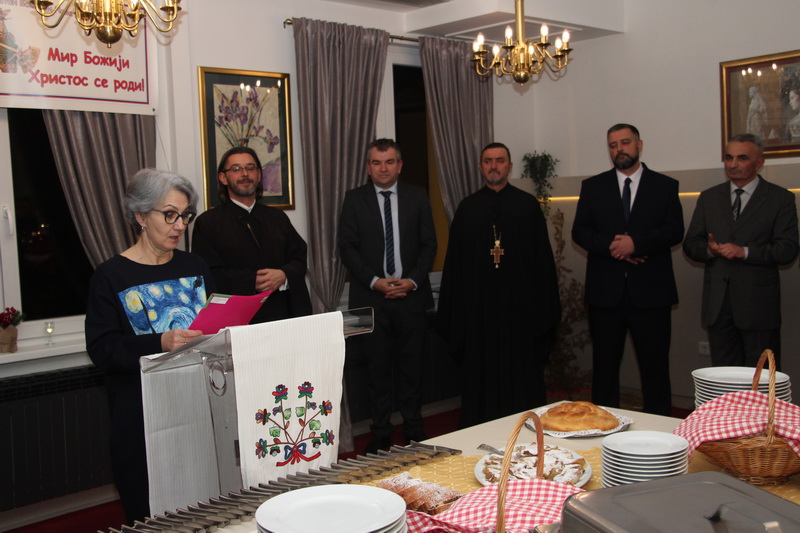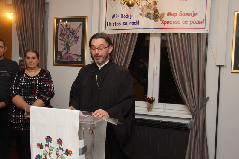 Nakon pozdravnih govora i čestitanja Božića književnica Irena Ivetić recitirala je pjesmu „Nije uzalud“ autorice prof. Sandre Halt-Ćuže iz Požege. Povjesničar Vinko Tadić održao je izlaganje o božićnim običajima srpskih pravoslavnih vjernika, potom je izvršen obred okretanja česnice (božićne pogače). Nakon okretanja česnica se lomi, a za osobu, koja je u svom komadu pronašla novčić, vjeruje se da ju je Bog blagoslovio. Ove godine novčić - euro je u česnici pronašla gospođa Ruža Radović.