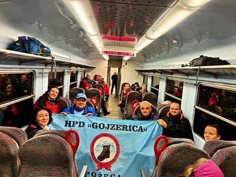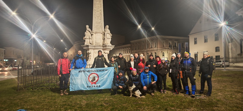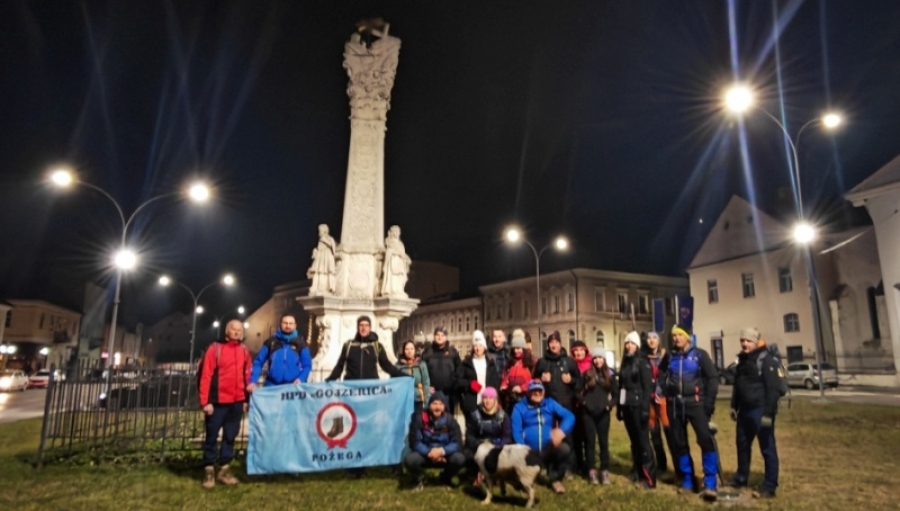 POŽEGA / POŽEŠKA KOPRIVNICA / POŽEGA - U subotu 31. siječnja 2026. godine u 17:00 sati, na željezničkom kolodvoru u Požegi okupila se vesela ekipa planinara iz HPD Gojzerica Požega. Tradicionalno svake godine organiziraju dva do tri noćna izleta i na svakom bude dobar odaziv, a tako je bilo i ovaj puta jer okupilo se više od dvadeset planinara. Vodič i organizator ovog noćnog izleta bio je Stjepan Lovrenčić, a osmislio je odlazak vlakom do Požeške Koprivnice te povratak preko Požeške gore. Prije dolaska vlaka napravili su zajedničku fotografiju ispred ĆIRE, a onda su sjeli u vlak napunivši cijeli jedan vagon. Vlak se polako ''taljigao'' do njihovog odredišta, usput prolazeći stanice u: Jakšiću, Novoselcima, Pleternici i Sulkovcima. Nakon pola sata vožnje vlak ih je iskrcao na stanici u Bučju, otkuda su pješice krenuli prema Požeškoj Koprivnici i ulazu na Slavonski planinarski put koji se nalazi na početku sela. Tu su im se priključili još neki članovi društva, pa su svi zajedno krenuli u mračnu šumu. Za početak su krenuli sa žestokim usponom što je od planinara iziskivalo veliki napor te se odmah vidjelo tko ima, a tko nema kondiciju. Bila je to šarolika ekipa od 10 do 70 godina i svi su bili kao jedno, jedna velika obitelj.