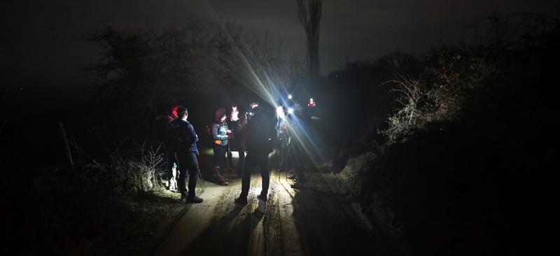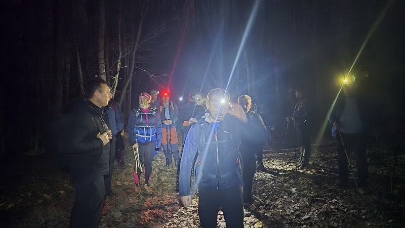 Nakon početnog napora nastavili su se kretati relativno ravnom šumskom stazom, punom srušenih stabala koja su morali zaobilaziti. Uz naglavne lampe koje su koristili za osvjetljavanje staze, pun mjesec im je olakšao vidljivost kako bi se što lakše kretali. Stigavši na vrh Klikuna napravili su dužu pauzu za odmor i okrijepu, posjedavši na drvene klupe koje se tamo nalaze. Zadovoljni i puni dojmova od nesvakidašnjih noćnih pejzaža, popili su topli čaj, nešto pojeli i odmorili se. Kako je noć bila hladna brzo su nastaviti s hodanjem, jer samo tako su mogli zadržati radnu temperaturu. Vodič Stjepan Lovrenčić poveo ih je sigurnom nogom i velikom voljom u Laze Prnjavor te dalje prema Seocima. Tu su napravili kraću pauzu za odmor i uživanje na ljuljačkama, a onda su nastavili spustivši se cestom do Jagodnjaka. Stigavši na gradski asfalt nastavili su pješice do Trga Sv. Trojstva i spomenika kugi. U centru grada ispred spomenika Presvetom Trojstvu napravili su zajedničku fotografiju prije rastanka, a onda su krenuli kućama svatko na svoju stranu.