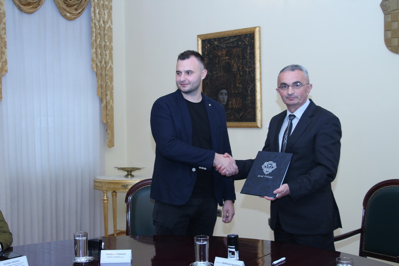 POŽEGA - U Gradskoj vijećnici grada Požega održano je svečano potpisivanje Ugovora s izvođačem radova za izgradnju križanja s kružnim tokom - rotorom na spoju Ulice Matice hrvatske i Sokolove ulice u koji je uklučeno i uređenje okolnih pješačkih staza i novih zelenih površina. Uz gradonačelnika Požega prof. dr. sc. Borislava Miličevića i požeško-slavonsku županicu Antoniju Jozić potpisivanju je nazočio u ime izvođača radova požeške tvrtke Promet građenje d.o.o. direktor Tomislav Ećimović, te v.d. pročelnice grada Požege Jelene Vidović i službenice za pripremu ugovora Ivane Čališ, uz nazočnost medija.