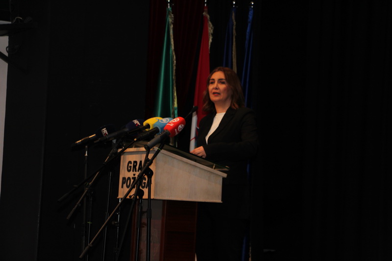 Županica Antonija Jozić istaknula je važnost Požege, kao administrativnog, gospodarskog, obrazovnog i kulturnog središta Požeško-slavonske županije te naglasila kako se kroz brojne projekte i suradnju svih razina vlasti nastavlja jačati njezin razvoj. Kako je naglasila, Županija trenutačno provodi niz projekata koji doprinose mozaiku napretka Požege. Među njima su izgradnja hladnjače za voće i povrće, energetske obnove Gimnazije Požega, Coworking centra Panora i Područne škole Mihaljevci, kao i izgradnja amfiteatra na prostoru bivšeg atletskog stadiona. - Jedan od projekata na koji smo posebno ponosni jest uspostava javnog linijskog prijevoza, koji sjedište županije grad Požegu, povezuje s drugim gradovima i općinama. U tom projektu možemo pronaći i simboliku našeg djelovanja. Povezivanjem ljudi, gradova i općina - rastemo. Zato s ovoga mjesta želim poslati jasnu poruku, poruku zajedništva. Partnerstvom i međusobnim povjerenjem, možemo graditi snažniju i razvijeniju županiju te osigurati sigurnije sutra za sve naše građane. U svemu spomenutom, kao i u izgradnji trodijelne dvorane u partnerstvu Grada Požege i Požeško-slavonske županije, od velike važnosti nam je podrška Vlade Republike Hrvatske koja prepoznaje potencijal ovog kraja i snažno podupire projekte usmjerene ravnomjernom regionalnom razvoju.