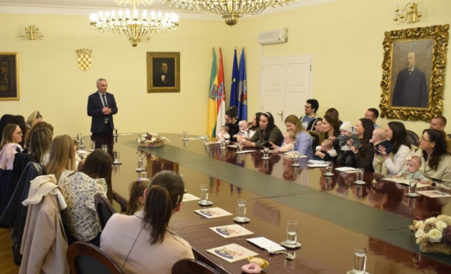 POŽEGA - U razdoblju od rujna do prve trećine studenoga 2025. godine na području Požege rođeno je 40 novih sugrađana – po 20 djevojčica i dječaka. Tim povodom u Gradskoj vijećnici upriličen je prijem za novorođene Požežane i njihove roditelje, a ugostio ih je gradonačelnik prof. dr. sc. Borislav Miličević.