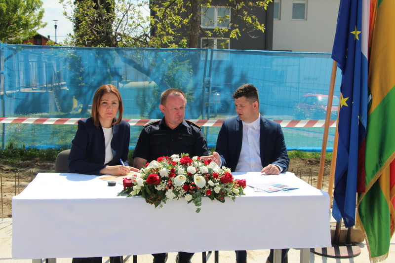 Kamen temeljac i potpisanu povelju položili su županica Antonija Jozić, općinski načelnik Dario Lončarević i predsjednik DVD-a Kaptol Tomislav Golić. Simbolični kamen temeljac položili su mlade nade DVD-a Kaptol, koji su ovom prigodom imali i pokaznu vježbu koju izvode na natjecanjima vatrogasne mladeži. Sve nazočne i zgradu u gradnji blagoslovio je kaptolački župnik vlč. Ivica Žuljević.