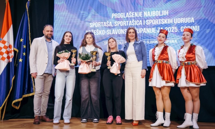 POŽEGA - U prepunoj Koncertnoj dvorani Glazbene škole Požega, održana je dodjela nagrada najboljim sportašicama, sportašima i sportskim udrugama Požeško-slavonske županije za 2025. godinu.Organizator dodjele bila je Sportska zajednica Požeško-slavonske županije uz potporu Požeško-slavonske županije.
