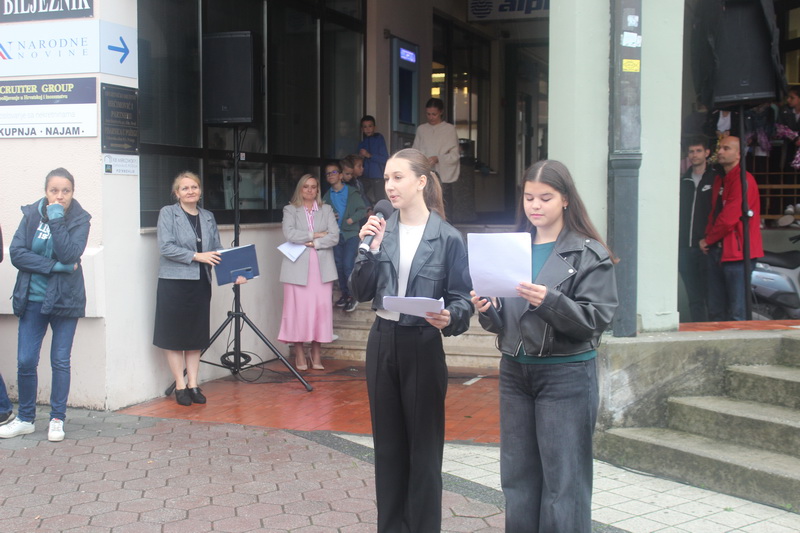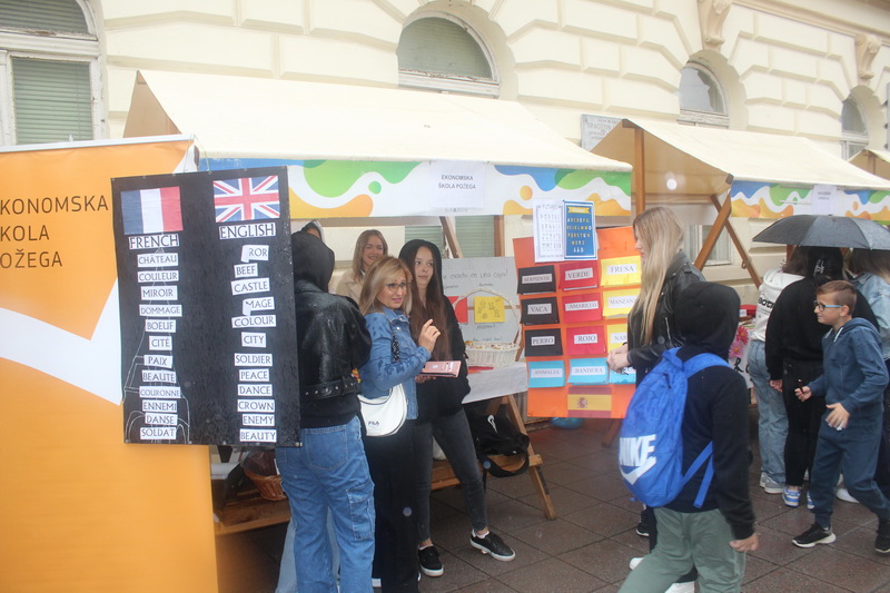 POŽEGA - Osnovna škola Antuna Kanižlića u Požegi organizirala je 9. javno obilježavanje Europskog dana jezika u pješačkoj zoni grada Požege s početkom u 10 sati. Manifestaciju je malo omela i kiša koja je padala u dopodnevnim satima, a otvorila ju je zamjenica gradonačelnika Požege Irena Martinek. Program na pozornici vodile su učenice Klara i Petra, a cijelo događanje organizirale su učiteljice Jasminka Hajpek i Biljana Marković.