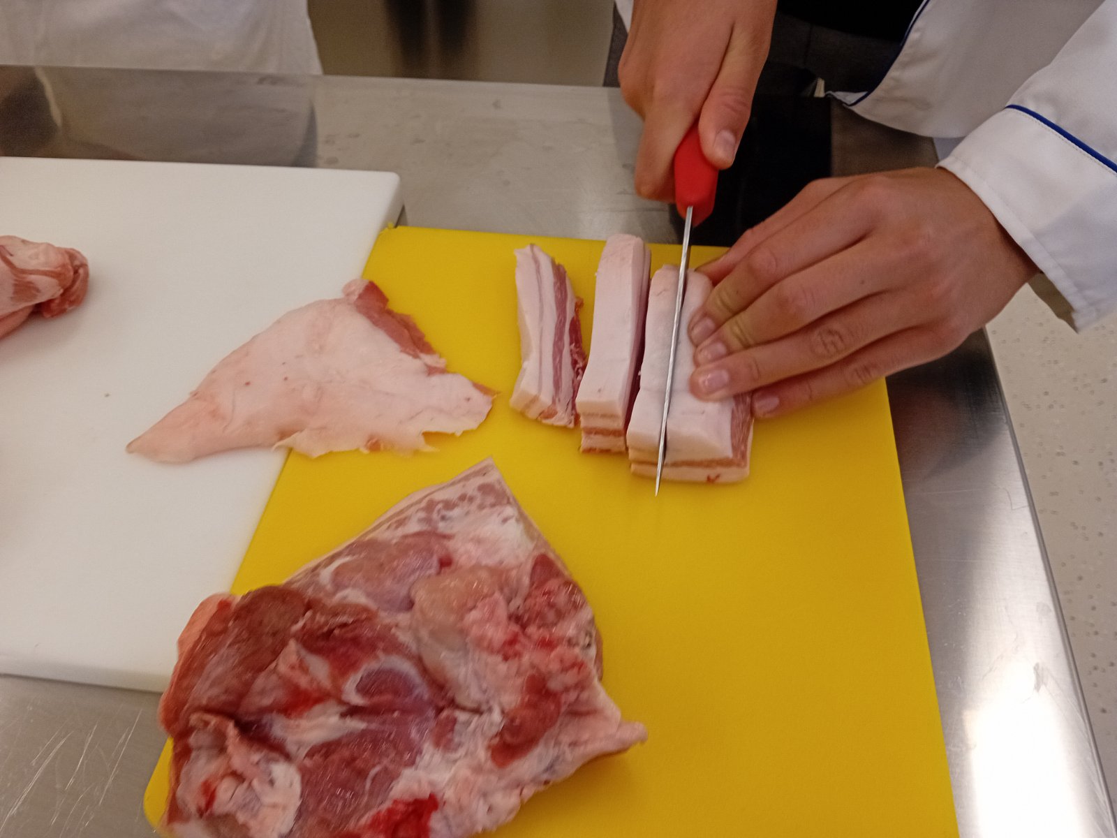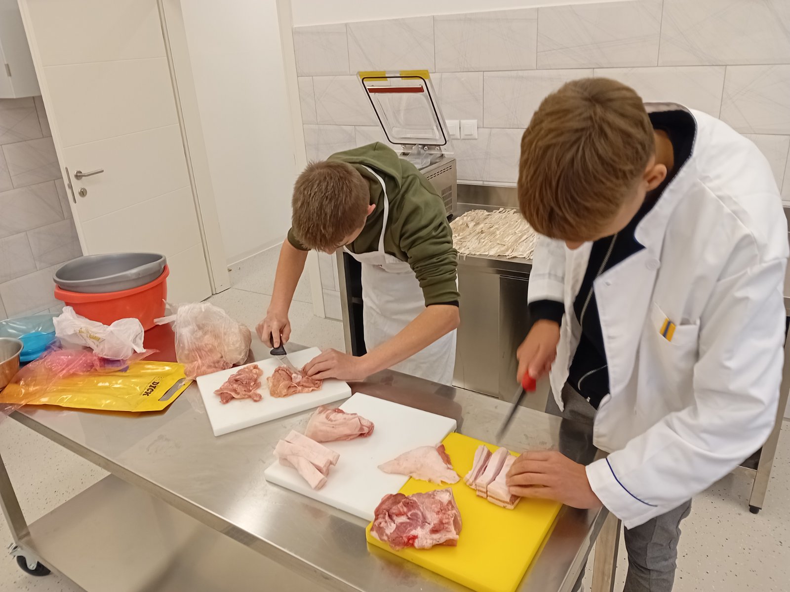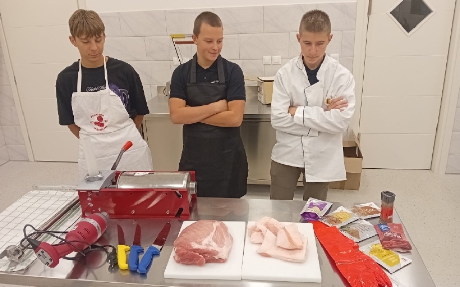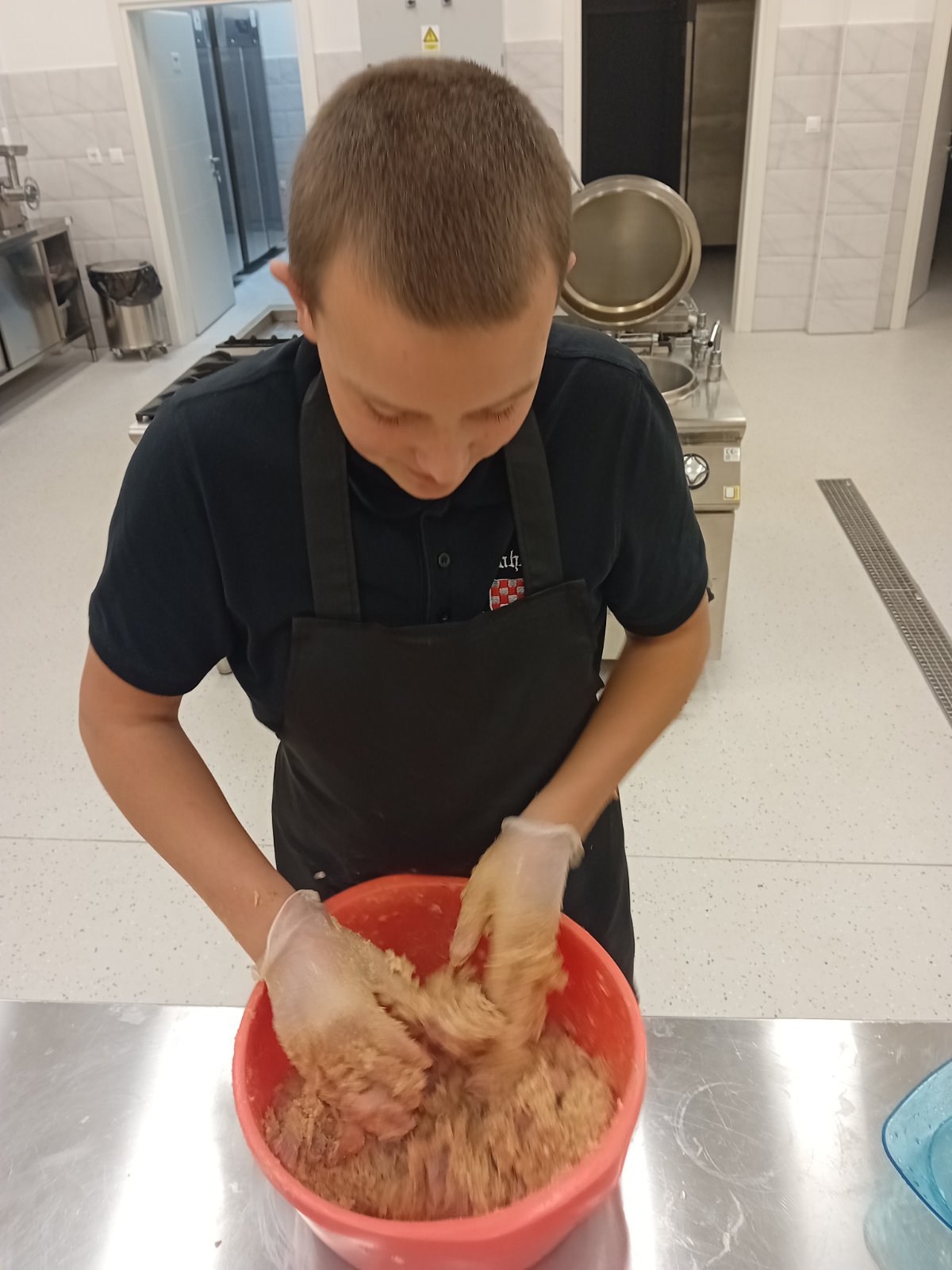 Pod stručnim vodstvom Mateja Bošnjakovića, mag. ing. preh. tehnologije, nastava u okviru modula „Sirovine za proizvodnju mesa i mesnih proizvoda“ pretvara se u pravo iskustvo stvaranja. Učenici uče sve faze mesarske proizvodnje – od prepoznavanja pasmina stoke i obrade sirovina do dimljenja, sušenja i oblikovanja gotovih proizvoda.