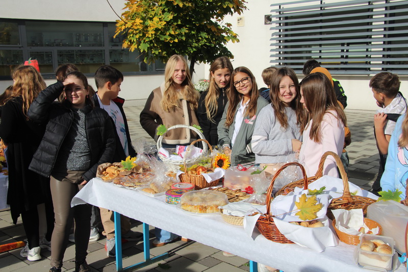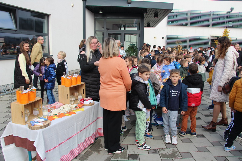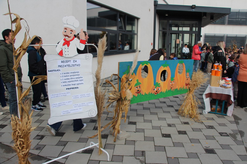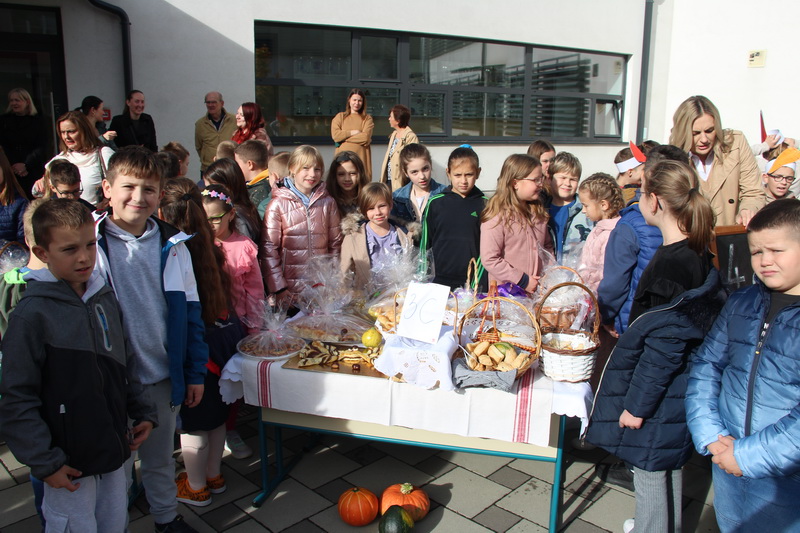 Sve je na početku pozdravila ravnateljica škole mr. sc. Lidija Pecko, zahvalivši svima, od mama, baka i starijih sestara i braće koji su pomagali učenicima nižih razreda da pripreme veliku raskoš proizvoda koji nam daruje zemlja, slanih i slatkih slastica koje su sva razredna odjeljenja vrijedno izložila. Kako naša škola radi u dvije smjene, tako smo organizirali svečanost i priredbe za prvu i drugu smjenu poslijepodne. U svečanosti su učenici sa svojim mentorima pripremili pjesme, literarne izričaje, dramsko scenske nastupe koje su svi učenici u gledateljstvu burno pozdravili pljeskom.