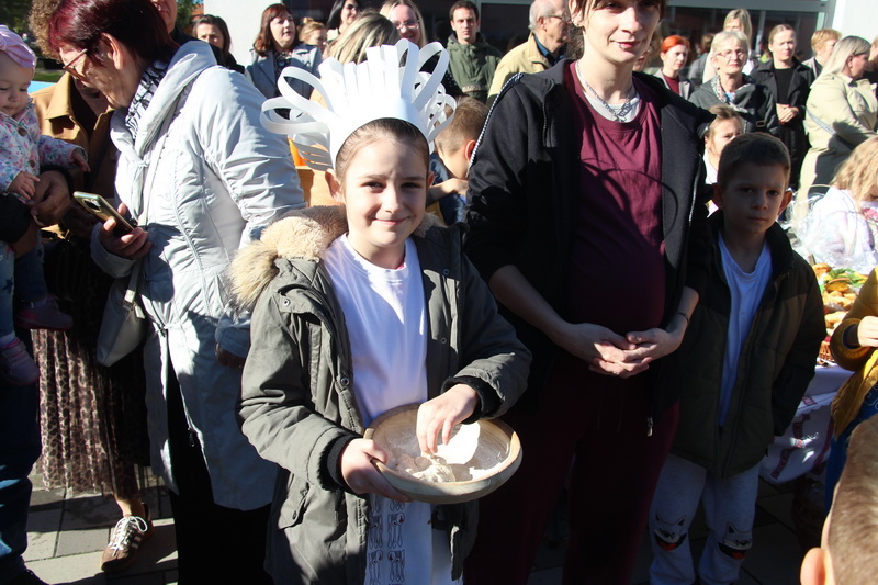 POŽEGA - Osvanuo je lijep, sunčan dan, a nakon oluje noć prije, što je omogućilo u dvorištu OŠ Dobriše Cesarića Požega održavanje obilježavanja Dana kruha i zahvalnosti za plodove zemlje uz priredbu koju su pripremili učenici i učitelji.