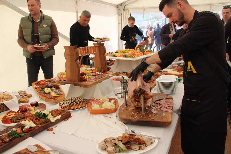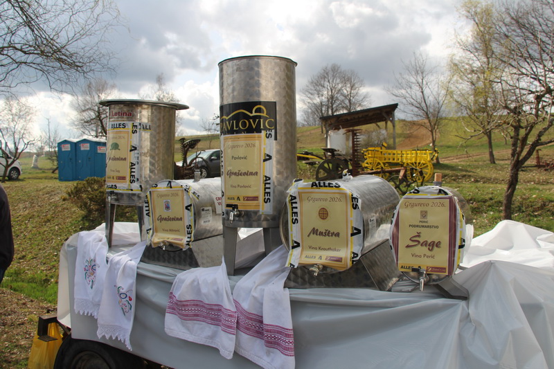 EMOVAČKI LUG - Na prostorima turističkog kompleksa Zlatni lug u Emovačkom lugu i ove godine se tradicionalno slavio dan Grada Požege i blagdan Grgureva u organizaciji tvrtke Alles elektromaterijal Požega i Krčme Zlatni lug iz Emovačkog luga. Uz pucnje topova, kao simboliku povijesne bitke kojom su 1688. godine iz grada Požega istjerani pripadnici osmanlijske vojske, organizirana je velika fešta za preko tisuću posjetitelja, poslovnih partnera, prijatelja i posjetitelja grada Požega. Thomas Heinz Pandžić, kao domaćin svakome je oko vrata postavio etui sa čašom, da čaša uvijek bude pri ruci i nikada ne bude prazna, a na stolovima je i ove godine bilo jako puno delicija. Na ražnju su se pekli odojci, divlji prasići, pilići, vinogradarski ćevap, staro jelo požeških vinogradara koje je doživjelo svoj povratak na stolove, guske, patke, roštilji, kotlovine a posebno je velik bio stol sa suhomesnatim mesnim delicijama, sirom iz mišine i brojnim drugim delicijama. Bilo je tu i nekoliko jela na žlicu, za one koji vole prije vina postaviti dobru podlogu, od čobanca, kotlovine, roštilja i dr, a gosti sa mora su pripremali i nekoliko vrsta morskih specijaliteta, od rižota sa sipom, a za sladokusce je bio pripremljen i brudet od žaba. Neće nitko ostati niti žedan, jer je pripremljeno 15 bačava i bačvica ponajboljih vina najpoznatijih vinara kutjevačkih i požeških vinskih kuća.