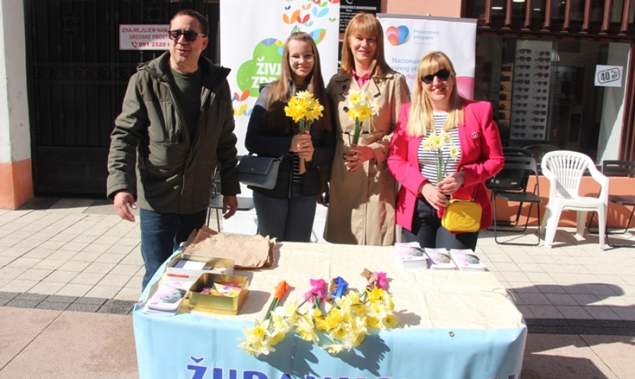 POŽEGA - Ovogodišnji Dan narcisa je dan kada se organizira humanitarna akcija namijenjena jačanju svijesti o prevenciji i ranom otkrivanju raka dojke te podršci svim oboljelima od ovog najčešćeg oblika zloćudne bolesti kod žena u Hrvatskoj i u većini zemalja u svijetu. U Cehovskoj ulici u Požegi Dan narcisa obilježio je Zavod za javno zdravstvo Požeško-slavonske županije, Liga protiv raka Požega i Klub žena operiranih na dojci Požega. Požeška Liga za borbu protiv raka obilježava preko 50 godina uspješnog rada i borbe protiv ove zloćudne bolesti.