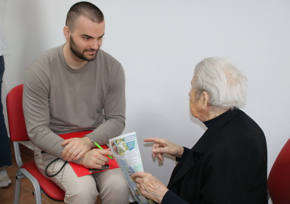 Dana 26. ožujka proveli su nekoliko sati u druženju s korisnicima Doma za starije i nemoćne osobe u Velikoj. Svima zainteresiranima omogućili su procjenu rizika od pada te mjerenje krvnog tlaka, vrijednosti šećera u krvi i indeksa tjelesne mase. Posebno je vrijedno bilo vrijeme provedeno u razgovoru i savjetovanju s korisnicima, pri čemu su teme bile znatno šire, čime je naša posjeta dodatno obogaćena.