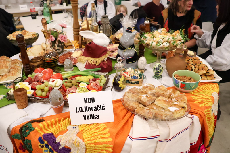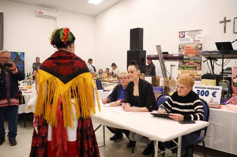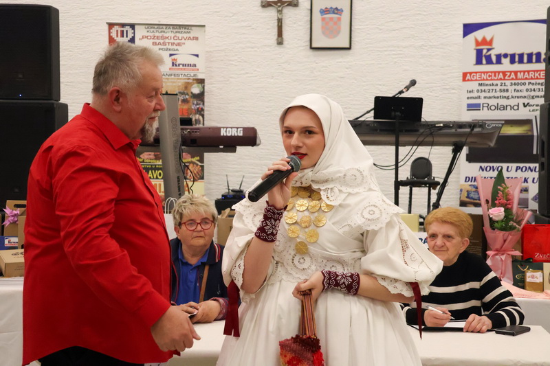 Organizator je nagradio i najljepše uređene stolove u nekome od starih običaja baštine i tradicije, koje su posebno uređivali članovi dvanaest folklornih društava, etno grupa, lovačkog društva i ostalih društava ove godine u dvorani. Treće mjesto i vrijedne PEVEX-a nagrade uz plaketu osvojila je najbrojnija skupina KUD-a Požeška dolina Požega i KUD-a Ivo Čakalić Kaptol, koji su uz plaketu dobili i poklon butelja Vinarije Tandara iz Kutjeva i Soldo iz Vetova. Drugo mjesto osvojio je stol koji su uredili članovi KUD-a Zavičajnog društva "Rama" iz Pleternice, uz poklon velike roštilj tave "Plamen" Požega, poklon butelja Vinarije Tandara i Soldo, a prvo mjesto osvojili su sa odlično opremljenim stolom i prikazom lovačkih objekata i lovišta uz suhomesnate delicije Lovačko društvo Papuk iz Biškupaca. Svi su nagrađeni vrijednim nagradama tvrtke Pevex Zagreb, Plamen Požega, Kutjevo d.d. Catrum Gin Kaptol i kutjevačkih vinarija. Svoje stole su uredili i članovi KUD-a Šijaci iz Biškupaca, KUD Bektež iz Bekteža, Češka beseda iz Bjeliševca, Matica slovačka iz Jakšića, Obitelj Mandić iz Velike, HPD "Sokolovac" iz Požege, KUD Orljava Pleternica i KUD Ivan Goran Kovačić iz Velike, KUD Krešimir Šimić Podcrkavlje, Obitelj Čakalić Češljakovci, Obitelj Ergović Pleternica, Humble Logistics Zagreb i drugi.