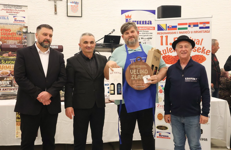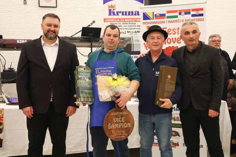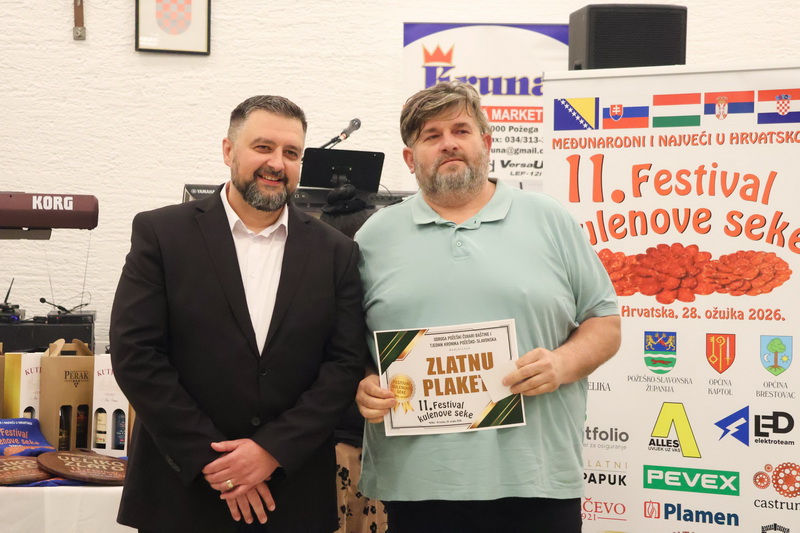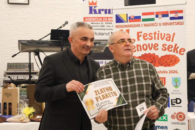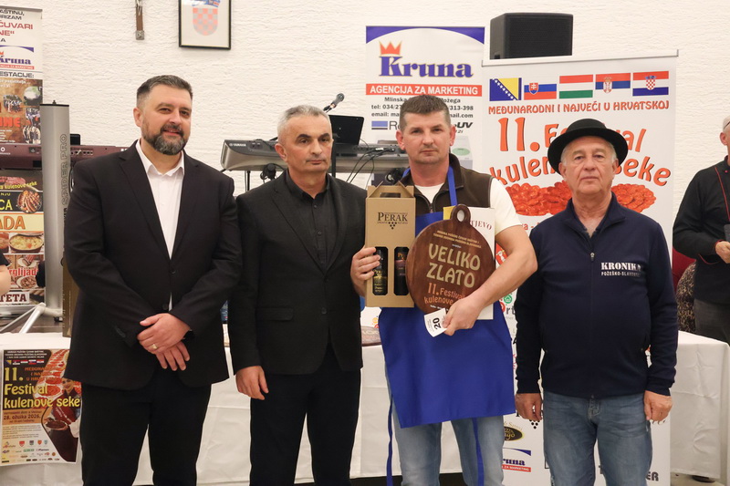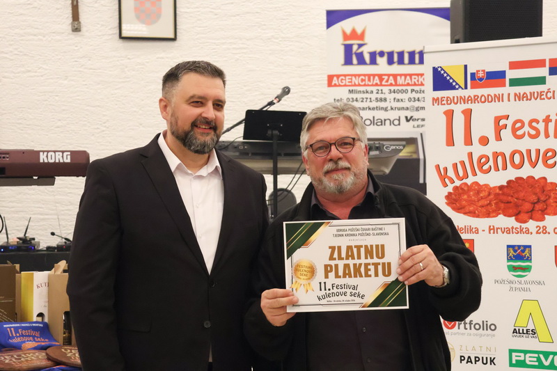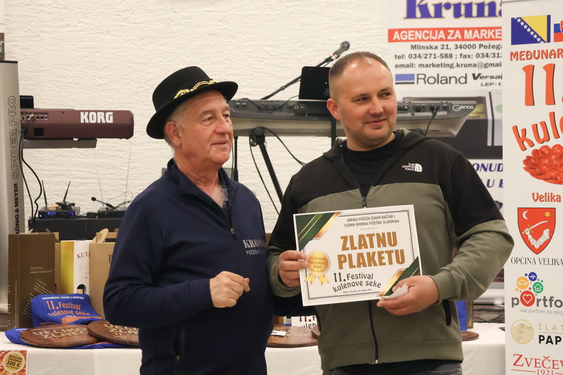 - Izrazito sam zadovoljan što smo zadržali visoki broj odazvanih proizvođača kulenovih seka, ove godine i rekordnih 134 uzarka, ali i po rekordnom broju posjetitelja u dvorani kojih je bilo iz cijele Hrvatske i inozemstva preko 400. Posebno sam ponosan na činjenicu da smo ove godine imali i veliki broj pobjednika s ostalih kobasijada u Hrvatskoj, BiH i Vojvodini, koji su uspjeli dokazati svoju kvalitetu odnijevši titulu velikog zlata i nekoliko visokih odličja i na našem Festivalu. Posebno sam zadovoljan jer onu sliku kada imate na pladnjevima narezano, svih 134 uzorka kulenovih seka, koju degustiraju svi posjetitelji u dvorani i ocjenjuju najbolju po njihovom mišljenju, ne možete često vidjeti. To je fotografija za pamćenje, koja i nas organizatore nosi da ustrajemo i organiziramo sve bolji i bolji Festival kulenove seke. Posebno zahvaljujem ocjenjivačkoj komisiji koja je izdržala pet satno ocjenjivanje i kušala i ocijenila svih 134 uzorka – istakao je idejni začetnik i pokretač nekoliko etno i gastro manifestacija u Požeštini, Vladimir Protić, predsjednik Udruge Požeški čuvari baštine i urednik Tjednika Kronika požeško-slavonska koja je organizirala i ovogodišnje izdanje festivala uz pokroviteljstvo općine Velika, Kaptol, Brestovac, Požeško-slavonske županije, TZ Zlatni Papuk i Led elektroteam Vidovci.