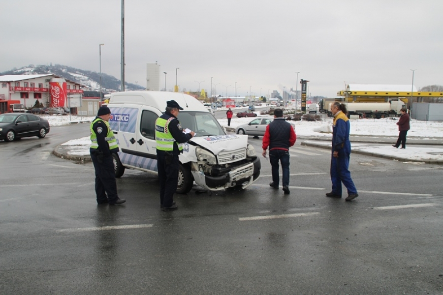 POŽEGA - Na raskrižju Industrijske i Šokačke ulice oko 12.15 sati dogodila se prometna nesreća između teretnog i osobnog automobila. Neslužbeno doznajemo da je do prometne nesreće došlo zbog oduzimanjem prednosti odnosno vozač automobila marke Ford PŽ reg. oznaka izašao je iz Industrijske ulice pred vozača teretnog automobila marke Fiat PŽ reg. oznaka koji se kretao glavom cestom odnosno Šokačkom ulicom nakon čega je došlo do sudara. Teretni automobil se od siline udarca zarotirao te je nastala veća materijalna šteta, a ozlijeđenih na svu sreću nema. Promet na raskrižju se odvija otežano zbog policijskog očevida.