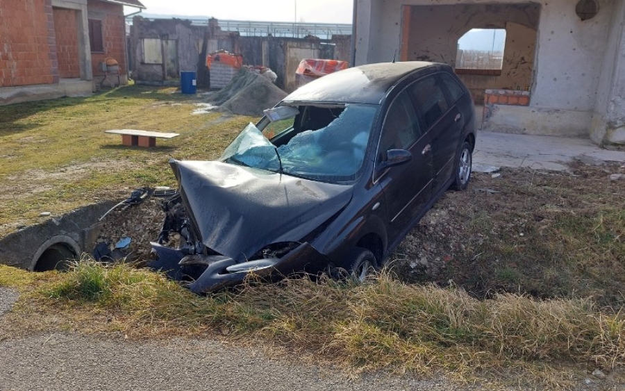 U prometnoj nesreći vozač je lakše ozlijeđen i protiv njega slijedi prekršajni nalog zbog počinjenih prekršaja iz Zakona o sigurnosti prometa na cestama.