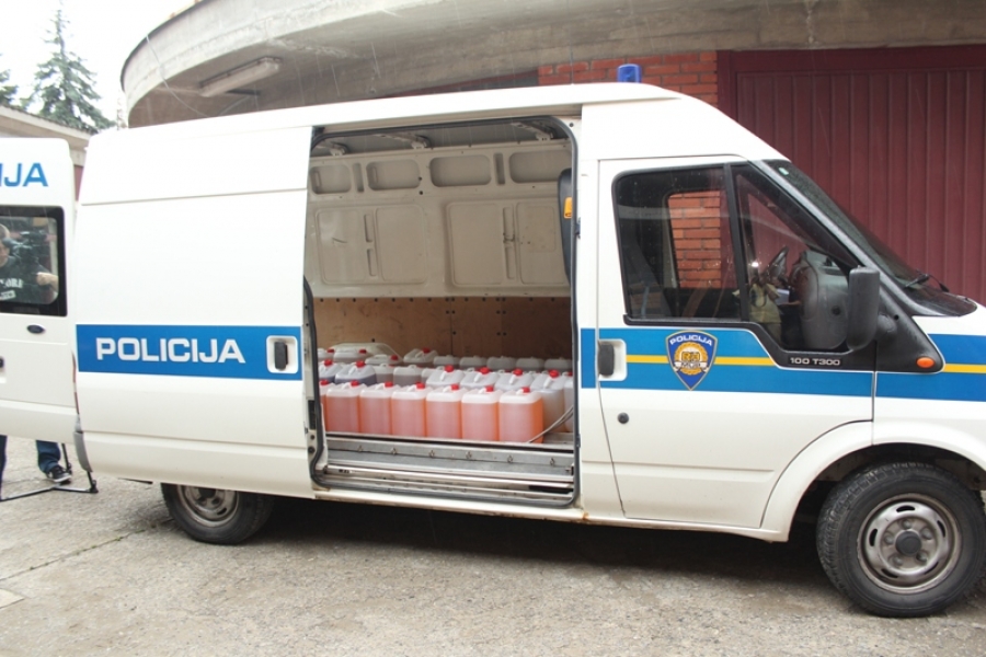 POŽEGA – Prilikom redovnog nadzora prometa policijski službenici PU Požega na području općine Velika zaustavili su putničko vozilo požeških registarskih oznaka i uočili da postoji mogućnost da se u vozilu nalazi nelegalan alkohol. – Vozilo je vozio 49-godišnjak s područja općine Velika, a u vozilu je zamijećena veća količina PVC kanistara ispunjenih tekućinom nalik na alkoholno piće, rakiju. Temeljem sudskog naloga izvršena je pretraga automobila kojom prilikom je nađeno i oduzeto ukupno 532 litre alkoholnog pića, za koje je kriminalističkim istraživanjem utvrđeno da se radi o rakiji, višnjevcu i kruškovcu, koje je 49-godišnjak neprijavljeno posjedovao s namjerom da prodaje na području RH – izvijestio je na tiskovnoj konferenciji Željko Pavić, voditelj odsjeka za obradu kriminaliteta PU Požega. Protiv 49-godišnjaka je podnesena kaznena prijava ODO Požega radi kaznenog djela nedozvoljene trgovine, te nadležnoj Carinarnici u Slav. Brodu obavijest radi naplate trošarinskog dijela na alkohol. Za ovo kazneno djelo zapriječena je kazna do godine dana zatvora, te obvezno plaćanje trošarinskog dijela na alkohol.