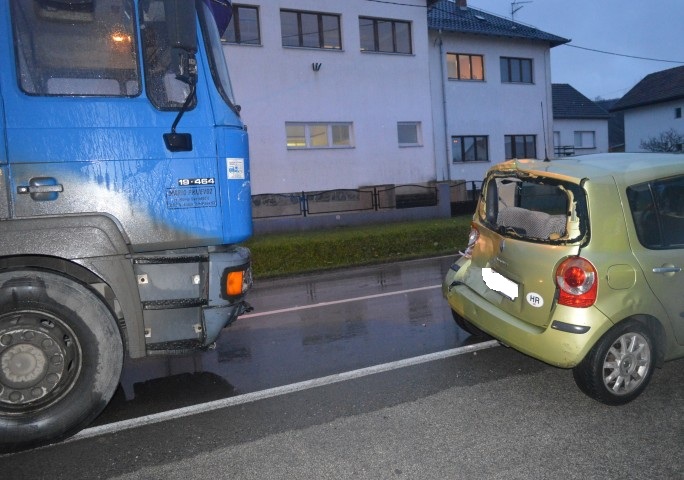 U utorak, 18. studenoga, oko 6.25 sati, u mjestu Vidovci, u Ulici Stjepana Radića, 22-godišnjak koji je upravljao teretnim automobilom marke „Man“, slavonskobrodskih registarskih oznaka, kojemu je bilo pridodano priključno vozilo marke „Schmit“, također slavonskobrodskih registarskih oznaka, uslijed neprilagođene brzine kretanja uvjetima i stanju na kolniku je prednjim dijelom vozila udario u osobni automobil marke „Renault“, požeških registarskih oznaka kojim je upravljao 26-godišnjak, a koji je zaustavio vozilo poradi crvenog svjetla na semaforu. U prometnoj nesreći lakše su ozlijeđena dva muškarca starosti 35 i 40 godina koji su se kao putnici nalazili u osobnom automobilu marke „Renault“.