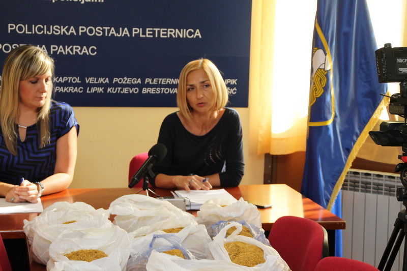 Istoga dana, u Požegi, u Šijačkoj ulici, policijski službenici su zatekli 23-godišnjaka koji je u dvije putne torbe nosio 13 komada PVC vrećica ispunjenih sitno rezanim duhanom, pojedinačnih težina od oko 1 kg, odnosno 12,6 kg duhana bez nadzornih markica Ministarstva financija RH. Temeljem naloga Županijskog suda u Slavonskom Brodu policijski službenici su pretražili obiteljsku kuću na području grada Požege u kojoj boravi 23-godišnjak prilikom čega su pronašli jednu PVC vrećicu s ukupno 665 kg sitno rezanog duhana bez nadzornih markica Ministarstva financija RH. Protiv 23-godišnjaka, višestrukog počinitelja kaznenih djela, slijedi kaznena prijava zbog kaznenog djela „Nedozvoljena trgovina“ a Carinskoj upravi obavijest radi obračunavanja i naplate trošarine.