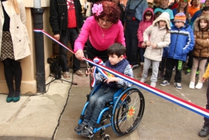 Najmlađi učenik s posebnim potrebama, prvašić Luka koji se također kreće uz pomoć invalidskih kolica, rezanjem vrpce otvorio je dječje igralište, a sve sprave na igralištu ubrzo su se napunila djecom.