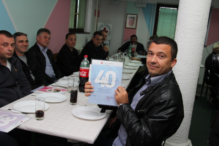 Priznanja – Višestrukim darovateljima: Zdravko Puharić za 80 puta, Slavko Samardžić (82 puta), Nada Ušurić (82), Davor Matić (83), Dalibor Margetić (84), Zoran Trninić (84), Miroslav Bošnjak (84), Ivica Matoković (86), Damir Potočnjak (86), Bogdan Vraneš (87), Mijat Ćolić (91), Branko Gojković (93), Petar Jurić (93), Božidar Zlomislić (94), Nenad Špigl (96), Ivica Gril (97), Ivica Krešić (97), Dario Mojaš (101), Miroslav Hroh (106), Ivan Kronšteter (107), Marijan Pavelić (109), Zvonko Balas (113), Vlatko Grgić (114), Anto Čolić (116), Željko Rakić (123), Anton Krajnc (127) i Zdenko Šojat za 134 puta darovanu krv.