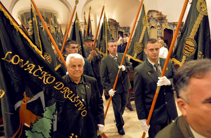 POŽEGA – Lovački savez Požeško-slavonske županije tradicionalno organizira obilježavanje blagdana sv. Huberta i zajedničku proslavu zaštitnika lovaca u katedrali sv. Terezije Avilske u Požegi. I ove godine okupilo se stotinjak lovaca iz trideset lovačkih društava na trgu sv. Terezije kako bi svečano u procesiji s lovačkim zastavama svih društava, na čelu s zastavom Lovačkog saveza, nazočili sv. misi u požeškoj katedrali. Euharistijsko slavlje predvodio je požeški biskup msgr. dr. Antun Škvorčević u suslavlju sa svećenicima koji su na službi u središnjim biskupijskim ustanovama, generalnim vikarom msgr. Josipom Krpeljevićem, prepoštom Stolnog kaptola i katedralnim župnikom preč. Ivicom Žuljevićem, kancelarom vlč. Ivanom Popićem, vlč. Marijanom Pavelićem i dr.