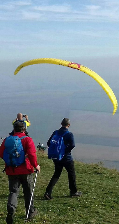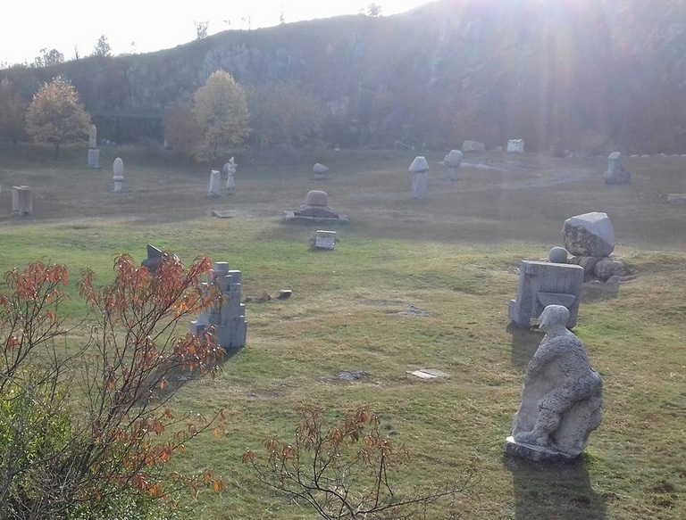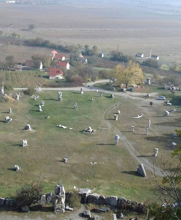 Na samom vrhu dočekao nas je pogled na nizinska polja i vinograde. Nepreglednost je ometala magla. Umjesto vještica susreli smo neočekivano puno paraglajdera (ili je to nešto u suvremenom obliku!?). U podnožju brda razgledali smo stalni postav izložbe s kamenim kipovima.