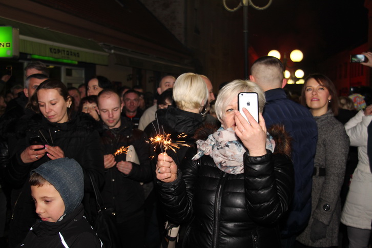 Uz toplu odjeću dodatno su zagrijavali tamburaši Posegane, a dobar ritam i ples sve su lagano zagrijavali i privlačili ponoći i svečanom dočeku. Odbrojavao je Djed Mraz Boris, a u ponoć zapaljene su stotine krijesnica. Uz otvoreni šampanjac nazdravili su i svojim sugrađanima prvi čestitali Novu 2018. godinu požeški gradonačelnik Darko Puljašić i požeško-slavonski župan Alojz Tomašević. Sve se nastavilo s jednim valcerom, a onda s dobrim rock brojevima.