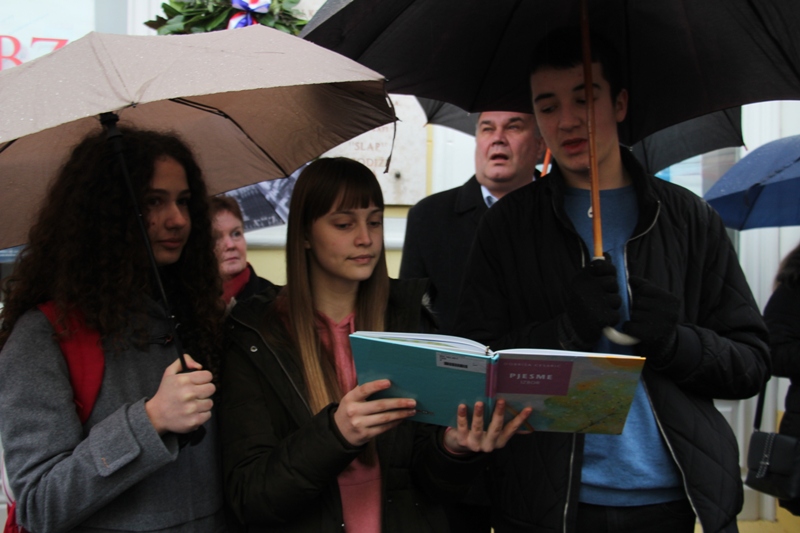 POŽEGA – Povodom obilježavanja 116 godina od rođenja velikog požeškog i hrvatskog pjesnika Dobriše Cesarića, 10. siječnja podno spomen ploče na njegovoj rodnoj kući učenici i učitelji OŠ Dobriše Cesarića iz Požege održali su kratki umjetnički program pročitavši nekoliko njegovih pjesama. Na spomen ploču na rodnoj kući pjesnika, ravnateljica škole Zvjezdana Krip i dogradonačelnik grada Požege Ferdinand Troha postavili su vijenac.