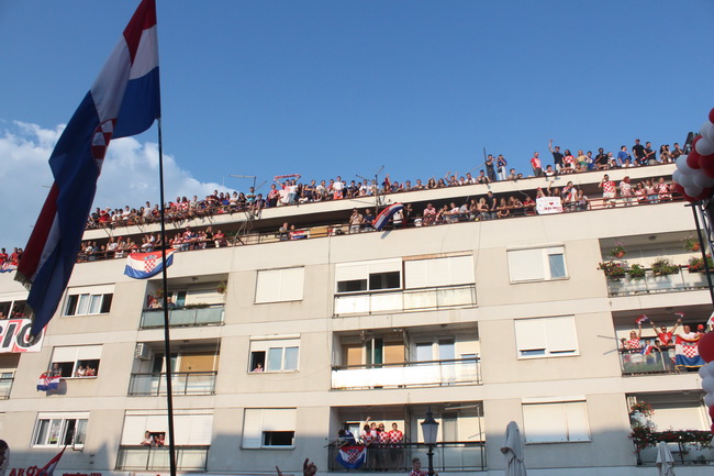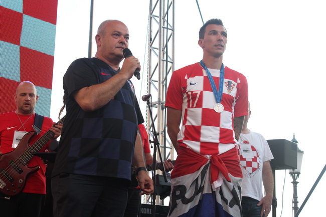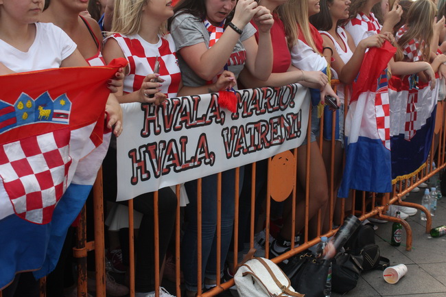 Dolaskom na binu, pozdravljajući sve prisutne i vidno ganut brojem ljudi koji su ga dočekali, zaželio je Mario da svi skupa zapjevaju njegovu najmiliju pjesmu "Ne dirajte mi ravnicu", a u pjevanju se pridužio i sam Škoro zahvaljujući Mariju i cijeloj reprezentaciji na sreći i ponosu koji su nam donijeli.