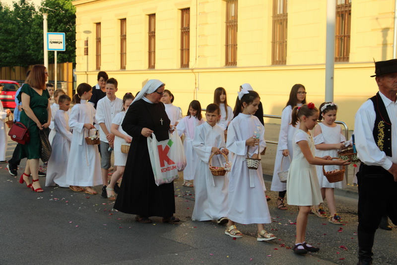 U procesiji od Katedrale sv. Terezije Avilske, preko Trga sv. Trojstva i Požeške biskupije do crkve sv. Duha u Požegi sudjelovali su brojni vjernici. Poseban je to događaj za vjernike, a i ove godine bilo je zaista puno vjernika u procesiji, predstavnika povijesnih postrojbi, vojske, policije, kulturno umjetničkih društava, djece iz dječjih vrtića i škola, predstavnika udruga, koji su uz pjesmu i molitvu sa cvijećem u rukama hodali u procesijskoj koloni.