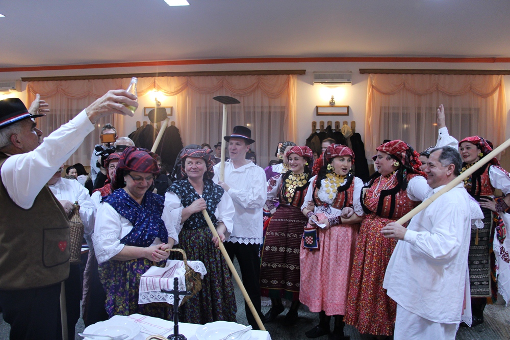 - Za ovu smo večeru pripremili jako stara jela kao što je restani krumpir s pečenom slaninom, pileći paprikaš, zelenu salatu prelivenu s vrelom mašću. Uz to i kolač od maka i oraha te kifle u kvas. Za piće je bila spremna rakija prije jela i dok se radilo, a vino „tudum“ od domaćeg grožđa poslije jela. Zapravo sve je ovisilo koliko je gazda bio imućan. Ta tradicionalna jela poslužili smo u posuđu starom stotinjak godina, napravljeno od teškog porculana, a sa priborom za jelo od aluminija - navodi Marica Špehar koja je stol uredila zajedno s Ankicom i Stelom Lucić, te Julkom Balen. Naravno da su na stolu bila i suhomesnata jela od slanine, šunke, kulena, sira, kuhanih jaja koja su se služila za doručak prije rada i u pauzama kada se radilo na polju. Kruh se pekao u krušnoj peći.