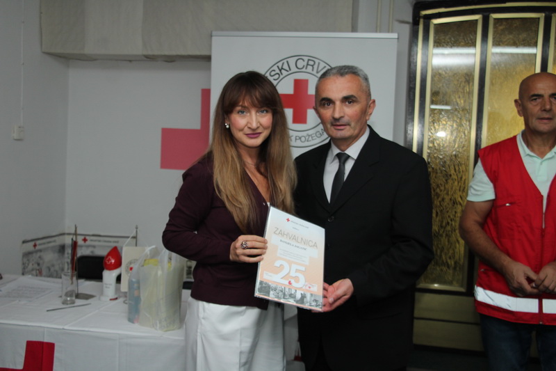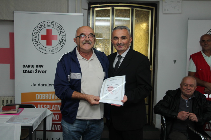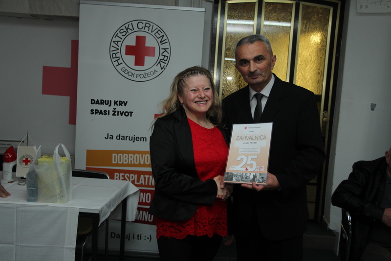 POŽEGA - Hrvatski Crveni križ Gradsko društvo Crvenog križa Požega upućuje iskrene čestitke svim dobrovoljnim davateljima krvi povodom 25. listopada Dana dobrovoljnih davatelja krvi, te izraze iskrene zahvalnosti za plemenitost i humanost koju su do sada iskazali u solidarnosti sa svima kojima je njihova krv bila neophodno potrebna. Svim dobrovoljnim davateljima krvi želimo dobro zdravlje i puno sreće uz osobni uspjeh u životu - istakli su u čestitci, a Gradsko društvo Crvenog križa Požega upriličilo je i prijem za sve višestruke darivatelje krvi i zahvalnicama, zlatnim značkama i prigodnim poklonima nagradilo sve uz 25. listopada Dan dobrovoljnih darivatelja krvi.