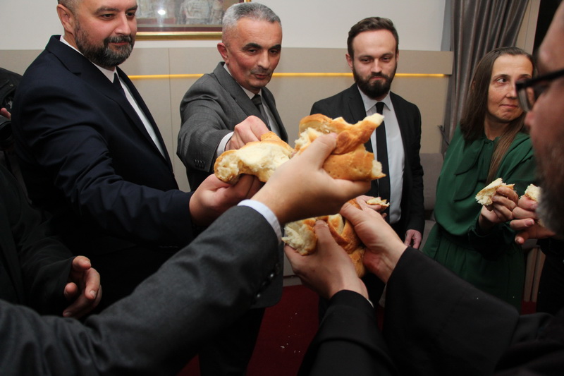 Nakon pozdravnih govora i čestitanja Božića književnica Irena Ivetić recitirala je pjesmu „Nije uzalud“ autorice prof. Sandre Halt-Ćuže iz Požege. Povjesničar Vinko Tadić održao je izlaganje o božićnim običajima srpskih pravoslavnih vjernika, potom je izvršen obred okretanja česnice (božićne pogače). Nakon okretanja česnica se lomi, a za osobu, koja je u svom komadu pronašla novčić, vjeruje se da ju je Bog blagoslovio. Ove godine novčić - euro je u česnici pronašla gospođa Ruža Radović.