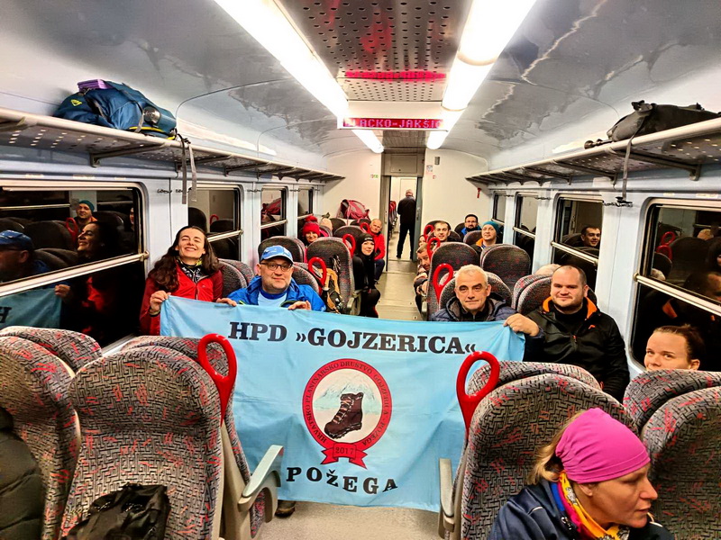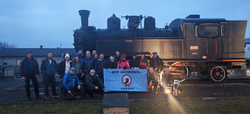 POŽEGA / POŽEŠKA KOPRIVNICA / POŽEGA - U subotu 31. siječnja 2026. godine u 17:00 sati, na željezničkom kolodvoru u Požegi okupila se vesela ekipa planinara iz HPD Gojzerica Požega. Tradicionalno svake godine organiziraju dva do tri noćna izleta i na svakom bude dobar odaziv, a tako je bilo i ovaj puta jer okupilo se više od dvadeset planinara. Vodič i organizator ovog noćnog izleta bio je Stjepan Lovrenčić, a osmislio je odlazak vlakom do Požeške Koprivnice te povratak preko Požeške gore. Prije dolaska vlaka napravili su zajedničku fotografiju ispred ĆIRE, a onda su sjeli u vlak napunivši cijeli jedan vagon. Vlak se polako ''taljigao'' do njihovog odredišta, usput prolazeći stanice u: Jakšiću, Novoselcima, Pleternici i Sulkovcima. Nakon pola sata vožnje vlak ih je iskrcao na stanici u Bučju, otkuda su pješice krenuli prema Požeškoj Koprivnici i ulazu na Slavonski planinarski put koji se nalazi na početku sela. Tu su im se priključili još neki članovi društva, pa su svi zajedno krenuli u mračnu šumu. Za početak su krenuli sa žestokim usponom što je od planinara iziskivalo veliki napor te se odmah vidjelo tko ima, a tko nema kondiciju. Bila je to šarolika ekipa od 10 do 70 godina i svi su bili kao jedno, jedna velika obitelj.