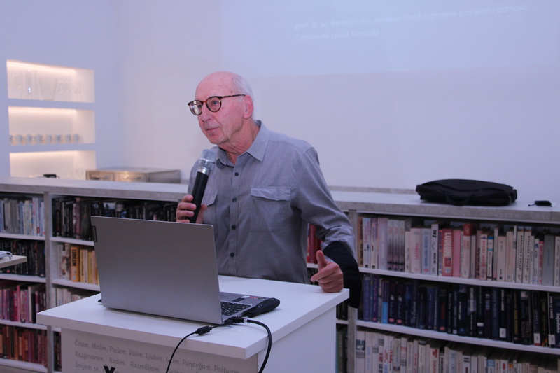 POŽEGA - U organizaciji Povijesnoga društva Požega prof. dr. sc. Reneo Lukić održao je u Gradskoj knjižnici Požega na Galeriji svjetlosti predavanje „Rusko-ukrajinski rat s reperkusijama na međunarodne odnose i zapadni Balkan“. Uz mnogobrojne pripadnike akademske zajednice i druge građane bio je nazočan Tomislav Hajpek, predsjednik Gradskoga vijeća Grada Požege.