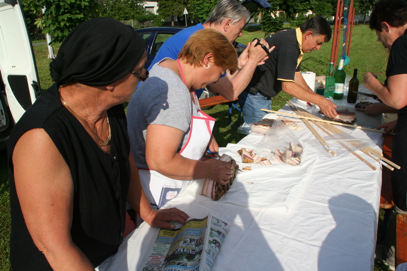 – Našeg Slavonca uvijek ste prije mogli prepoznati i opisivali su ga uvijek s torbicom preko ramena u kojoj je uvijek nosio komad slanine, komad kruha i glavicu luka. Slanina je nepokvarljiva, može se uvijek jesti, a mogla ga je hraniti nekoliko dana. Uvijek je teško radio Slavonac, na polju i u šumi, pa je i prehrana trebala biti jača. Danas se više ne radi kao prije, no to nije razlog da ne pripremamo i dalje svoje suhomesnate specijalitete po kojima je Slavonija nadaleko poznata.Uz Švargl, čvarke, kobasice, kulen u šunku, tu je svakako i slanina. Danas zbog toga slavimo slaninu, a na našem Festivalu slanine natječemo se tko će napraviti najljepšu „slaninsku ružu“ i ispeći je na otvorenoj vatri. To je poznati specijalitet koji se uvijek pravio na otvorenom, dali uz čuvanje stoke, u lovu, u šumi dok su se pravila drva. Zadovoljan sam odličnim odzivom ekipa, kao brojem, tako i brojem, pa i preko desetak osoba u ekipama. Nadam se da će i ova manifestacija dalje postati tradicija – istakao je ispred organizatora, Vladimir Protić, glavni urednik tjednika Kronika Požeško-slavonska.