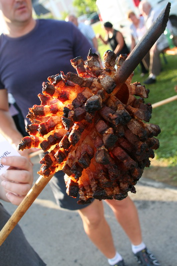 Puno kreativnosti su pokazale natjecateljske ekipe, od preciznog zarezivanja slanine, do kreacija tabli slanine u srce i druge oblike. Osim dobrog i ravnomjernog zarezivanja da se tabla slanine prilikom pečenja polagano zatvara u krug i ističe samo komadiće slanine otvorene poput ježa, još važnije je bilo to ispeći na vatri, da ne izgori, da se ne prepeče, nego da postane prava „slaninska ruža“. Dojmljivo je svakako bilo gledati te bukete slanine kako se polagano peku i stvaraju novi oblik, a da o mirisu koji se širio okolinom i ne govorim. Kako se na istoj lokaciji održavao susret vinara iz cijele Požeštine i okolice, vinara sa Krka i vinara iz Mađarske, te dodjeljivane diplome za najkvalitetnija vina 9. Međunarodnog ocjenjivanja vina u organizaciji Udruge Vino-kap, na najbolji način je prikazano pravo sljubljivanje pečene slanine i vina. Da upravo nakon ovako ukusne slanine, degustacija vina ide kao podmazana, istakli su sudionici i brojni posjetitelji Festivala vina.