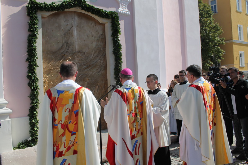 - Srdačno zahvaljujem svima onima koji su sudjelovali u izvedbi ovih vrata i u njihovu postavljanju na katedralni ulaz, napose gospodinu Damiru Ujeviću iz Zagreba čija ih je tvrtka izlila u bronci, gospodinu Oliveru Subotiću, izvođaču bravarskih radova, arhitektu Borisu Vučiću Šnepergeru, voditelju obnove katedralnog pročelja te Ivici Žuljeviću, prepoštu Stolnog kaptola i katedralnom župniku koji je strpljivo i požrtvovno koordinirao poslove vezane za ostvarenje tako važnog djela. Hvala i svima vama koji sudjelujete na ovom svečanom činu blagoslova novih vrata i obnovljenog katedralnog pročelja, posebno učenicima i djelatnicima požeške Katoličke osnovne škole i Gimnazije – dodao je biskup.