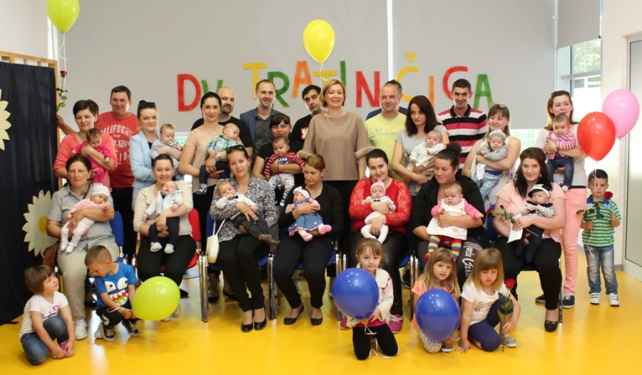 PLETERNICA - Gradonačelnica Pleternice Antonija Jozić u društvu zamjenika Domagoja Katića uručila je u prostoru Dječjeg vrtića Tratinčica poklon bonove roditeljima petnaestero djece s područja grada Pleternice koja su rođena od 1. siječnja do 31. ožujka ove godine.