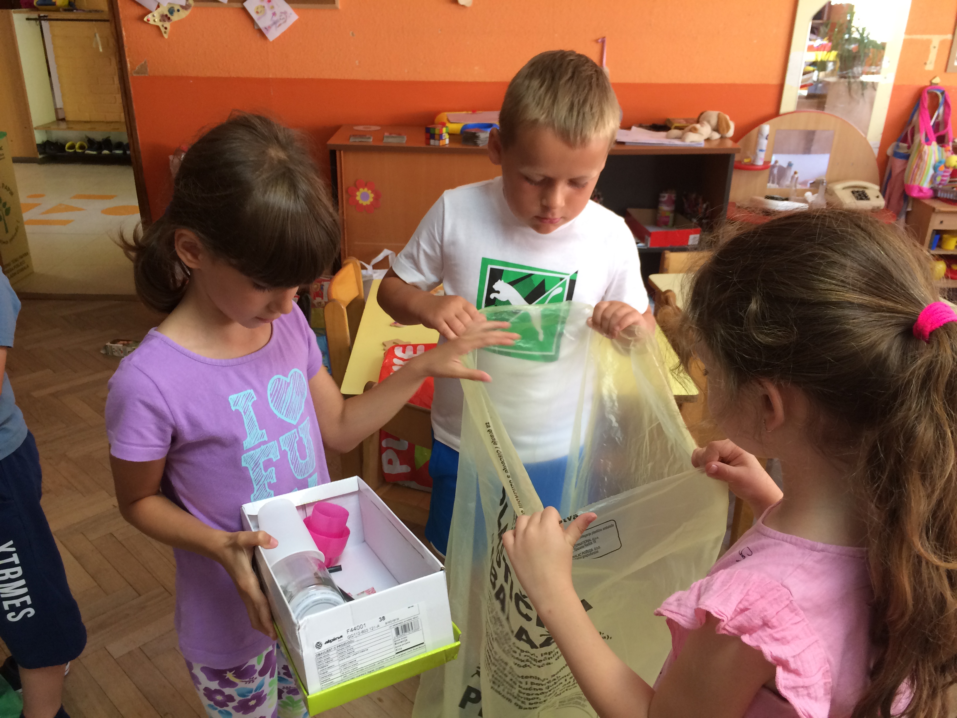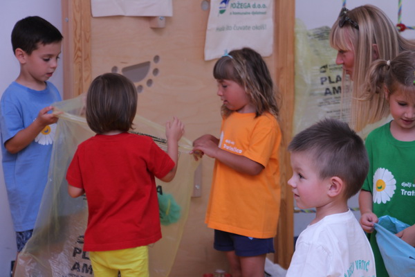 U prostorima vrtića postavljeni su štandovi, odnosno „zeleni otoci“ s plavim, žutim i zelenim vrećama za odvajanje korisnog otpada. Roditelji i djeca su po dolasku u vrtić donosili korisni otpad, odvajali ga u za to predviđene vreće i zauzvrat su dobili platnenu vrećicu uz „obećanje“ da će ih nositi u kupovinu umjesto skupih i ekološki neprihvatljivih plastičnih vrećica. Odgojitelji i djeca puno su truda uložili u realizaciju suradnje te izrazili želju da slične aktivnosti nastavimo i iduće pedagoške godine.