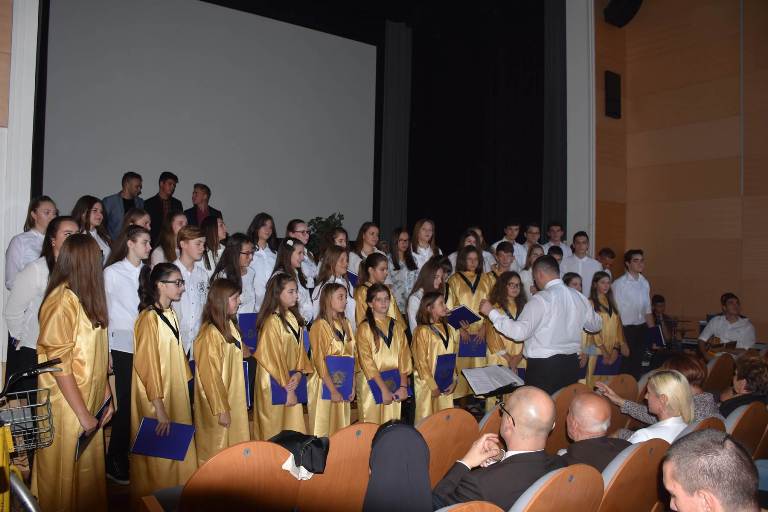 POŽEGA - U predvečerje uoči Trećega biskupijskog euharistijskog kongresa u prepunoj Dvorani sv. Terezije Avilske u Požegi učenici Katoličke gimnazije i drugi mladi povijesno-scenskim programom pod nazivom „Dvadeset godina plodne žetve“ predstavili su dvadesetogodišnju povijest Požeške biskupije.