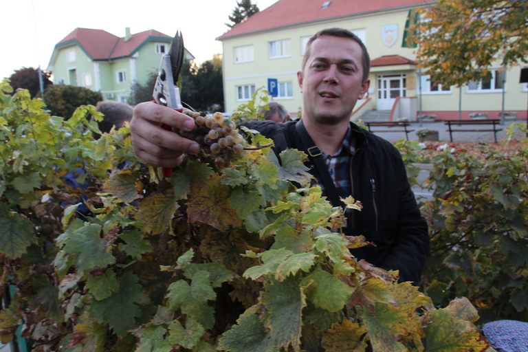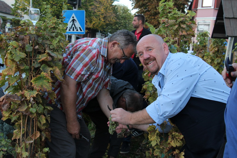 KUTJEVO – Već tradicionalno članovi Udruge „Kutjevački vinari“ na jedinstvenom Trgu graševine u središtu grada Kutjeva obilježavaju završetak berbe grožđa u svojim vinogradima, završnom berbom grožđa na oglednom vinogradu na samom trgu. U tom vinogradu svaki član udruge „Kutjevački vinari ima jedan trs, koji svaki vinogradar orezuje, dok za ostalo održavanje brine svake godine drugi član.