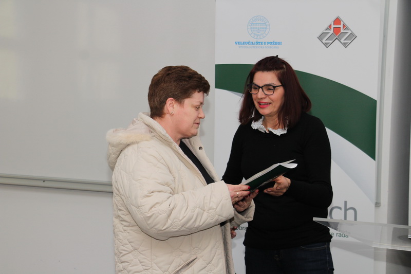 Na završenoj edukaciji čestitali su profesori Veleučilišta u Požegi koji su sudjelovali u edukaciji, prof. dr. sc. Berislav Andrlić, prof. dr. sc. Robert Idlbek i prof. dr. sc. Branka Svitlica. – Cjeloživotno obrazovanje je i kod nas zaživjelo i ovo je naš drugi projekt obrazovanja odraslih osoba i povećanja njihove zapošljivosti. Ovdje vas je bilo sa različitim predznanjima, no moram istaći da su se svi jako trudili, pokazali veliki interes za znanjem i na kraju polučili određeno znanje. Nadam se da će vam to pomoći u budućem radu ukoliko se već s time bavite ili da će vas to možda potaknuti da se uključite u taj posao – istakla je Branka Svitlica uz uručena uvjerenja.