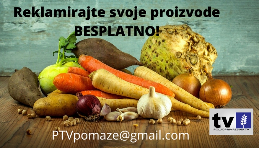 Ovim putem pozivamo sve poljoprivrednike koji imaju problema s plasmanom svoje robe do svojih kupaca da nam pošalju kratak opis proizvoda ili listu proizvoda kojeg prodaju, sliku, adresu i broj telefona uz napomenu da šalju li proizvode poštom ili dostavljaju na kućnu adresu. Poljoprivredna TV će oglas napraviti besplatno i prikazivati ga u tv programu. Svoje podatke zainteresirani mogu poslati na mail: Ova e-mail adresa je zaštićena od spambota. Potrebno je omogućiti JavaScript da je vidite. ili nas nazvati na telefon 099/399-2154, stoji u priopćenju koje nam je poslala Danijela Ergović, voditeljica marketinga i prodaje.
