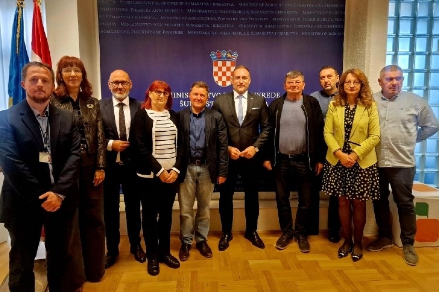 Potpredsjednik Vlade i ministar poljoprivrede, šumarstva i ribarstva David Vlajčić s državnim tajnikom Zdravkom Tušekom te suradnicima održao je u srijedu, 8. listopada 2025., sastanak s predstavnicima Središnjeg saveza udruga uzgajivača svinja Hrvatske na temu obnove i povećanja svinjogojske proizvodnje u Republici Hrvatskoj.