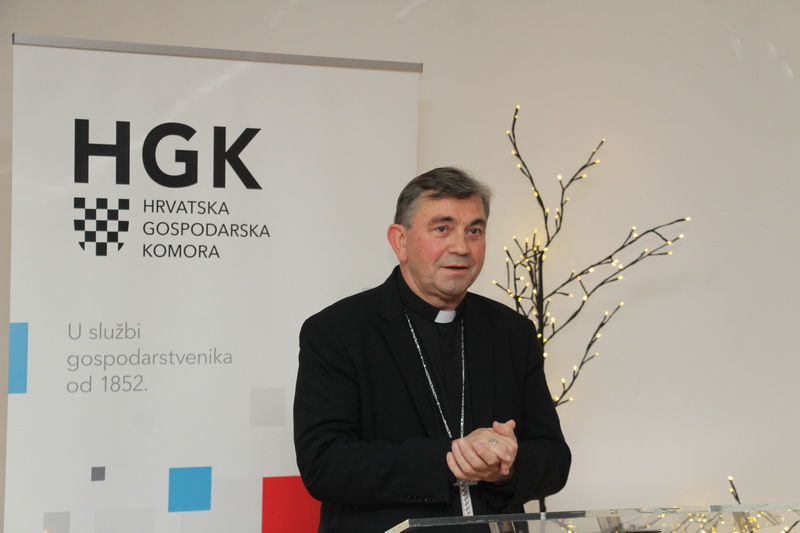 Poseban pozdrav gospodarstvenicima uputio je požeški biskup msgr Ivo Martinović koji je istakao da je zapazio dvije riječi bitne za gospodarstvenike, ali i za naš svakodnevni život - Hrvatska kvaliteta, koja je moto HGK. Čestitao je svima nadolazeći Božić i zaželio svima sretnu i uspješnu Novu godinu.