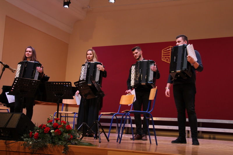 Svu svoju raskoš zvuka i mogućnosti pokazao je i novi koncertni klavir, uz čiju su pratnju skladbe izvodili brojni solisti, profesori na pojedinim instrumentima. Tako smo čuli bisernicu, brač, čelo, berdu, violončelo, harmonike, gitaru, saksofon, flautu, trubu, udaraljke. Ženski vokalni ansambl uz pratnju klavira izveo je i We are the World. Posebno je posjetitelje oduševila četveroručna izvedba na klaviru skladbe Karneval životinja. Koncert je završio izvođenjem skladbe u izvođenju orkestra uz sopranisticu "Šetamo kroz grad".