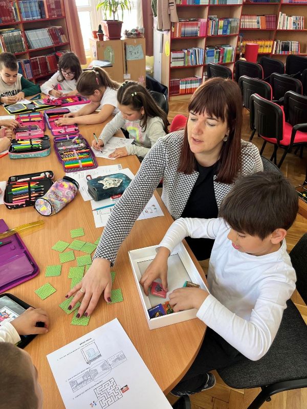 POŽEGA - Svjetski dan knjige i autorskih prava, koji se u svijetu obilježava 23. travnja, učenici 1. a razreda OŠ Dobriše Cesarića iz Požege s učiteljicom produženog boravka Majom Burić i školskom knjižničarkom Mirnom Kovačević obilježili su s nekoliko različitih aktivnosti. Dan je započeo zajedničkim čitanjem i slušanjem priče o „Mišu u školskoj knjižnici“, a obilježavanje se završilo igranjem i slikopričama koje su učenici čitali.